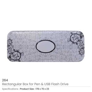 The box used for packaging is constructed of thin metal. It is unique because it can hold multiple pens. The container box is suitable for use as a gift set. It is a great gift package because it includes a USB, a pen, a key holder, etc. In addition, the gift set features a space for a logo that can be printed on the top of the lid.