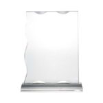 Wide flame crystal awards with glass base packed in the black carton gift box.