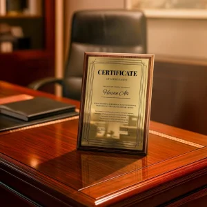 Wooden plaques with gold Spanish plates are royal and luxurious plaques. This flat-formed wooden plaque had made of exceptional wooden material. Thus, it has a long-lasting effect on the customers. Its glamorous design can suit any of your clients’ needs and attract them to your product. It has a horizontal design. Its size is 20.5 cm x 25.5 cm. Thus, it is enough to print an appreciation certificate. Moreover, these branded plaques are so lightweight and portable. Thus, these promotional plaques are amazing branding tools